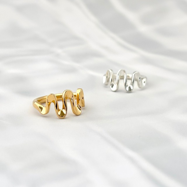 WAVES ring リングは、浜辺に打ち寄せる波をイメージしてデザインされたアイテムです。 シンプルでありながら左右対称の波の形状が特徴で 曲線が立体的に描かれたこのリングは、 光を受けて躍動的に反射し、存在感を放ちます。 こちらの商品は受注生産品となっております。 オーダーをいただいてから2週間ほどで発送いたします。 リング:素材/シルバー925、メッキ/K23 シルバーのリングはメッキがかかっていません。 サイズ:11号 ±2までサイズ調整可能です。ご注文時にお知らせください。