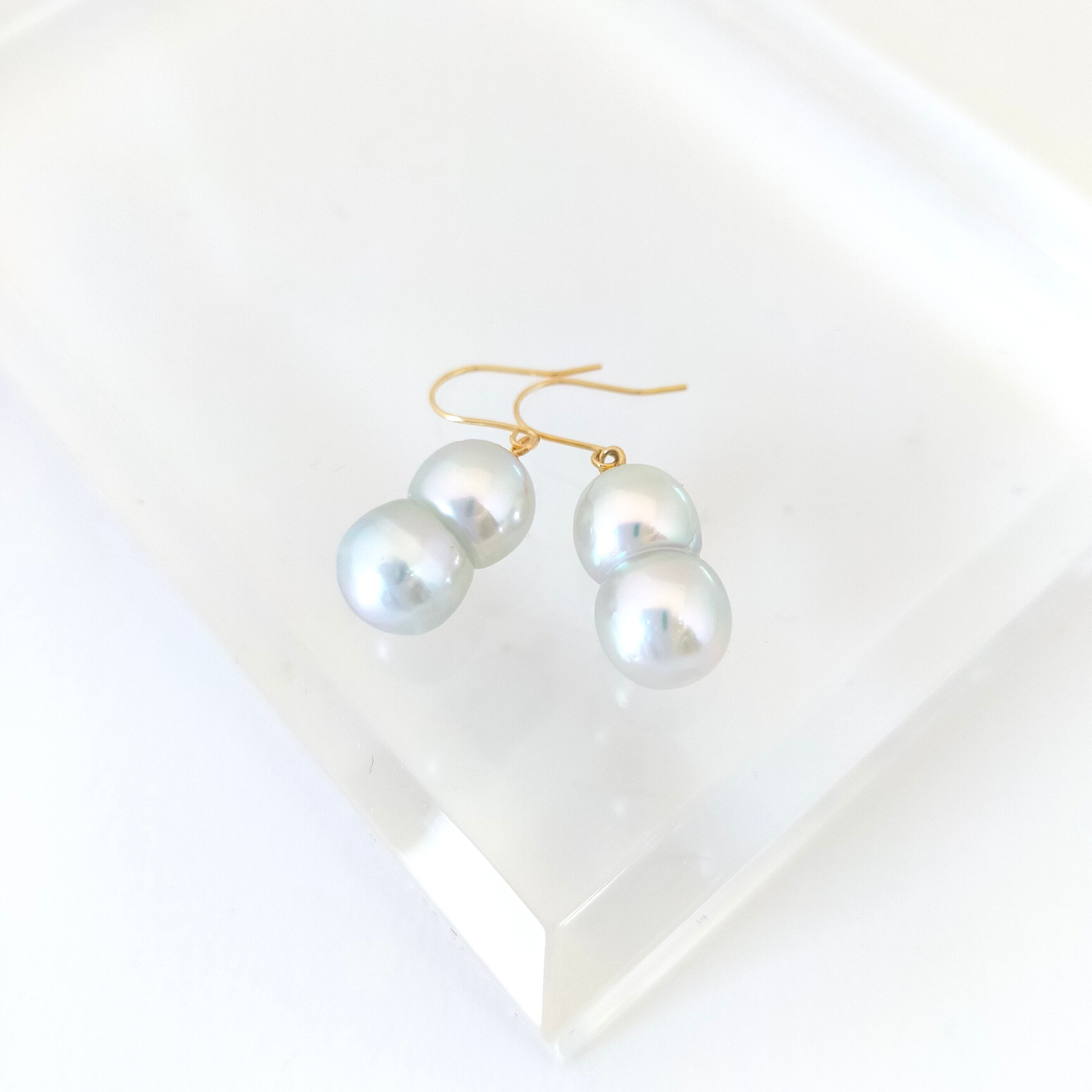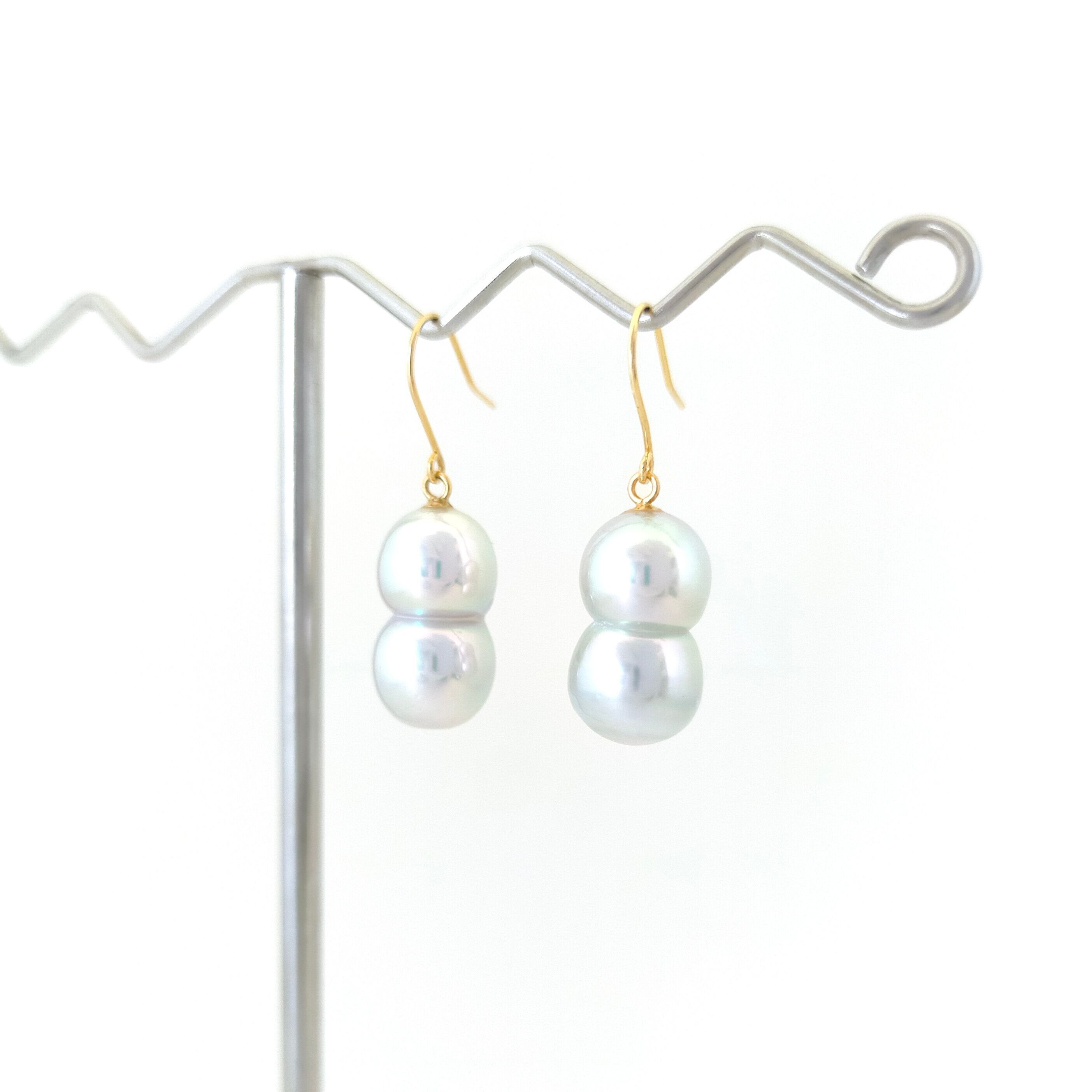 あこや真珠 ふたごパール 7.5mm フックピアス K18 AKOYA TWIN PEARL EARRINGS