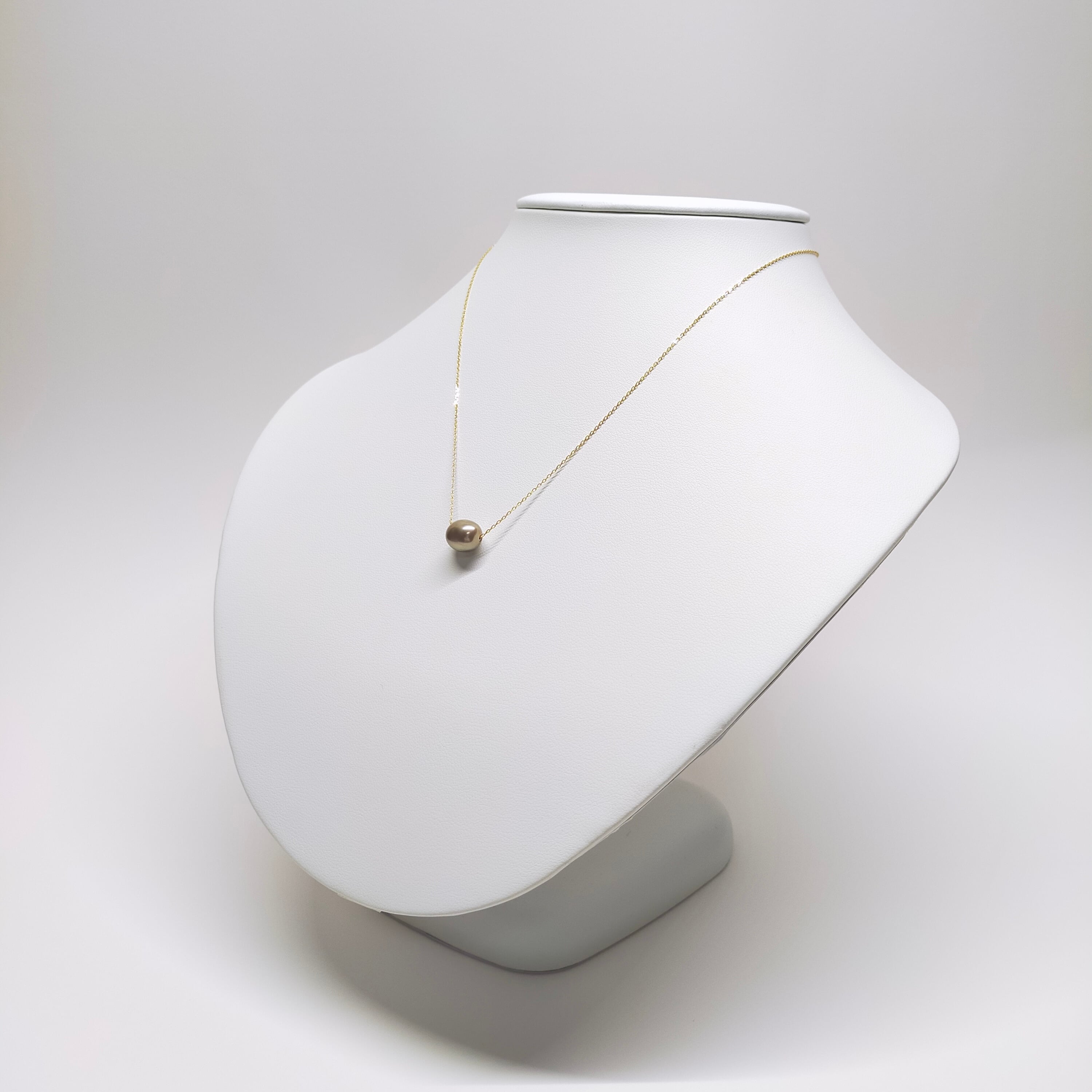 パールに開けた穴に直接ネックレスチェーンを通した、「スルータイプ」のネックレスとなっております。